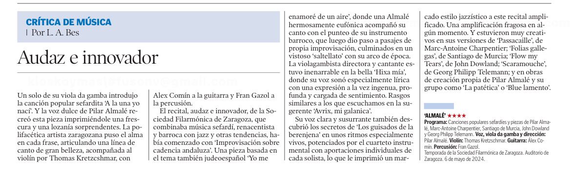 PILAR ALMALÉ, voz, violagambista y dirección