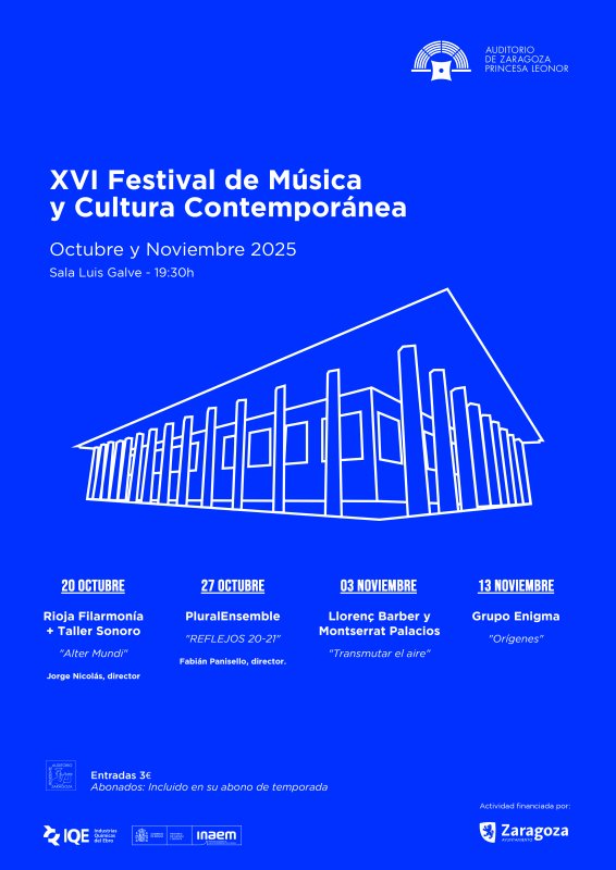 Comienza el Festival de Música y Cultura Contemporánea del Auditorio de Zaragoza; Octubre y Noviembre 2025.